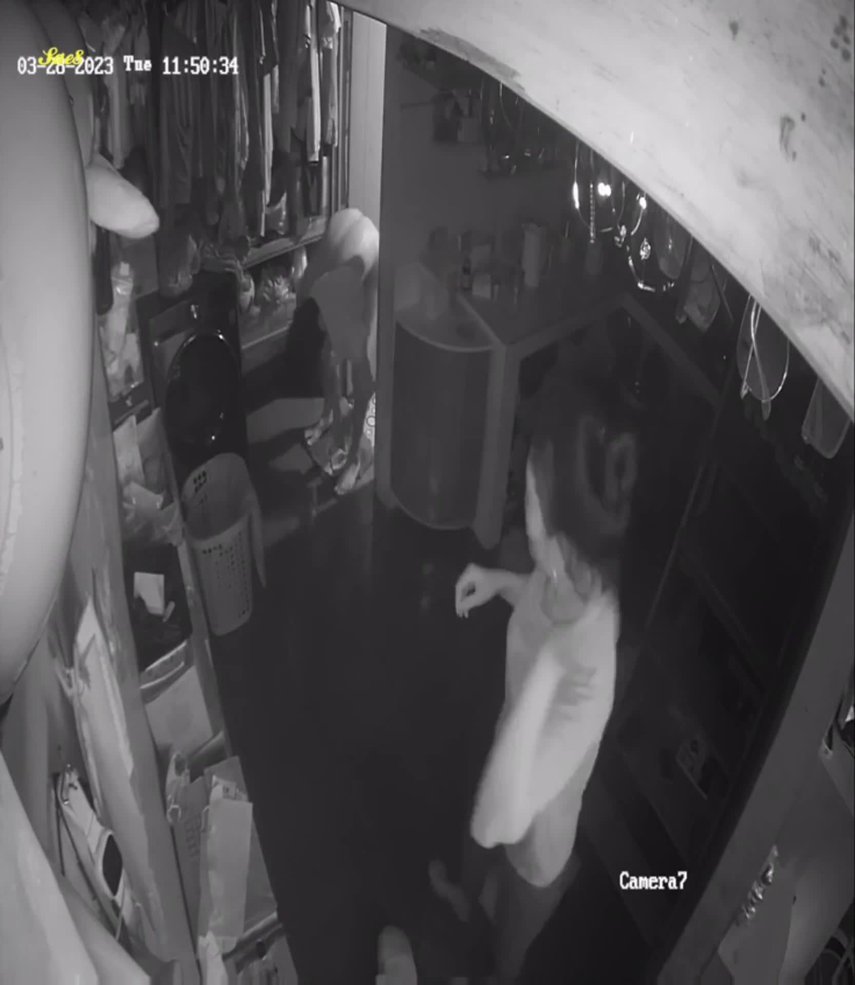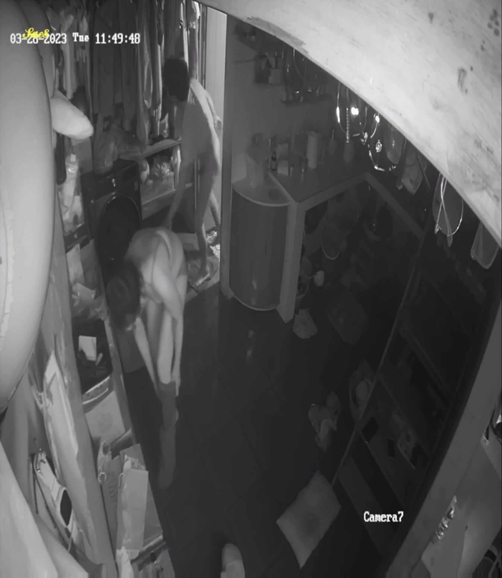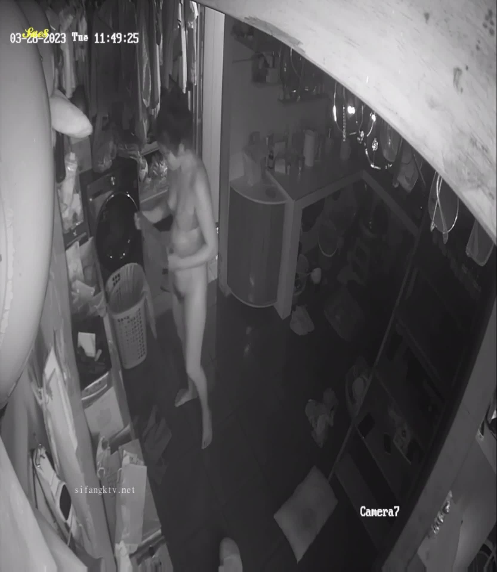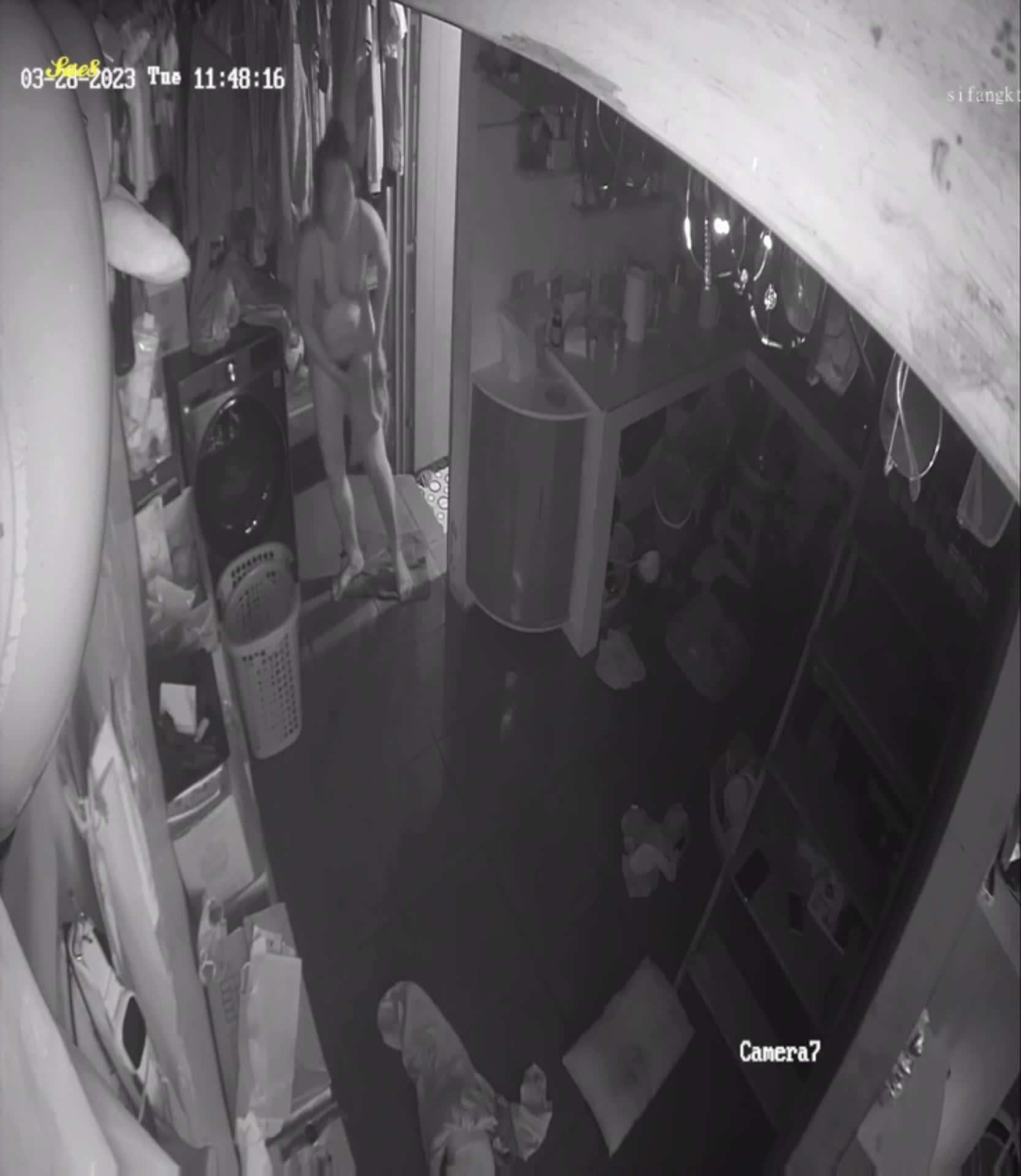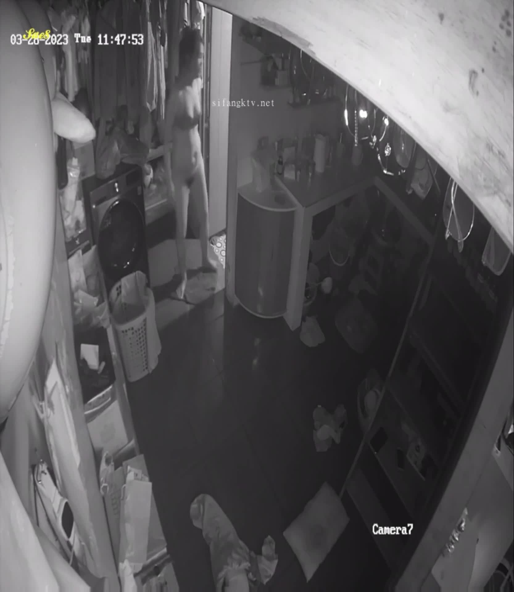 摄像头夜视拍摄少妇拖地中被路过的老公后入啪啪。
